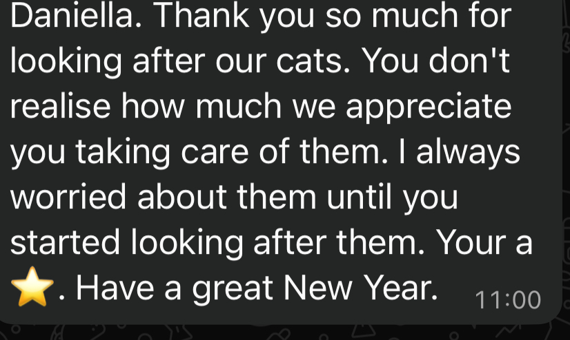 Nowadays, I work in Digital Marketing, which allows me to work remotely and flexibly. So, I decided to take this opportunity and dedicate my time and energy to offering pet sitting services, helping pet owners take care of their beloved companions.